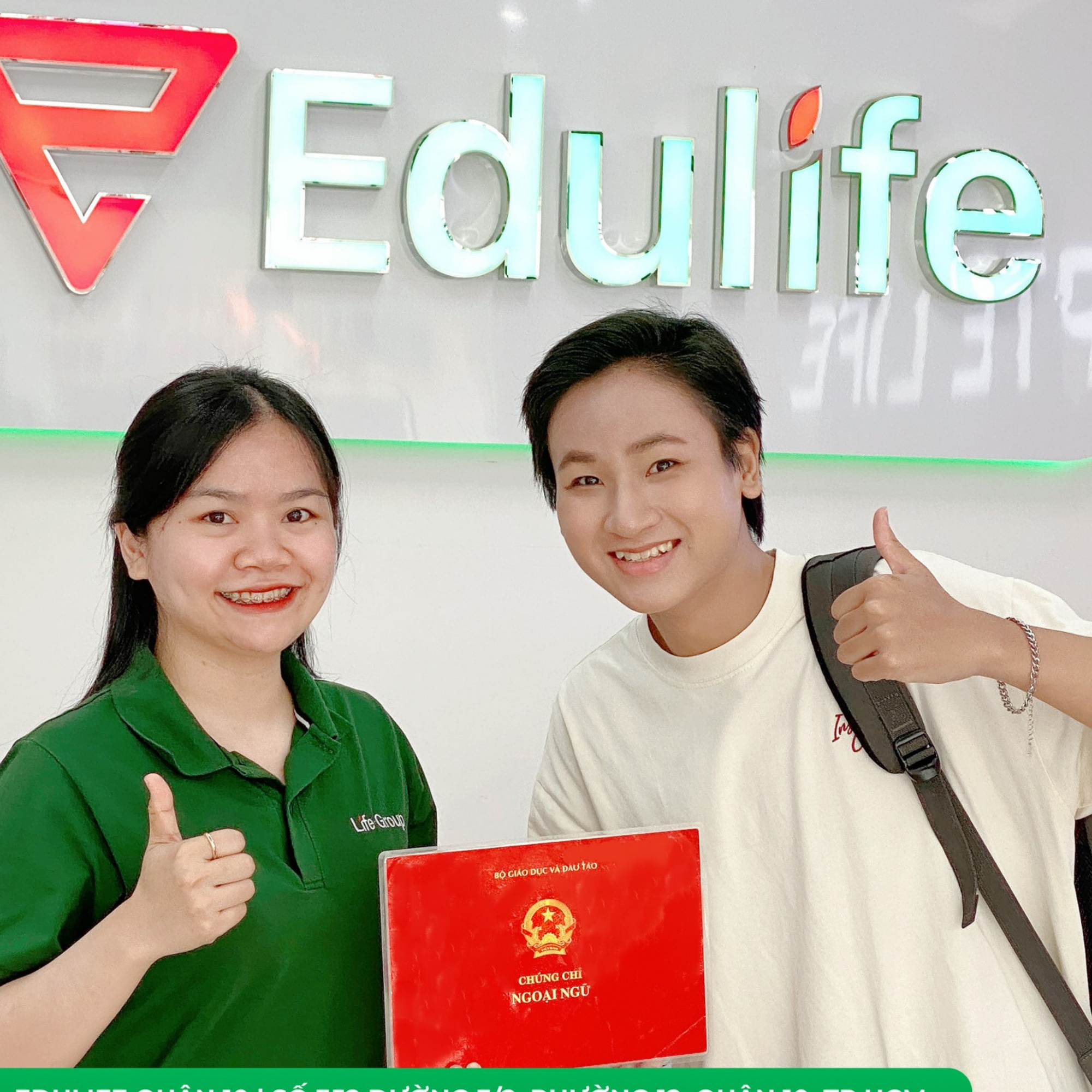 Mình đã từng đi học một số trung tâm và cũng đã từng thi trượt một số lần và lúc đấy cũng chán k muốn tìm thêm trung tâm nào nữa. Nhưng lướt tiktok lại thấy video của Edulife mình cũng khá ấn tượng và cũng tò mò nên đã tìm đến để đăng ký xem sao. Ai ngờ mình đã thi được bằng chứng chỉ tiếng anh B2, giá như biết đến Edulife sớm hơn thì đã k mất thời gian và chi phí đi học ở trung tâm khác. Cảm ơn các thầy cô ở trung tâm hỗ trợ mình rất nhiều, cảm ơn các bạn tư vấn đã nhiệt tình hỗ trợ cho mình khi đến đăng ký. Mình sẽ giới thiệu đến bạn bè của mình đến đây học.
