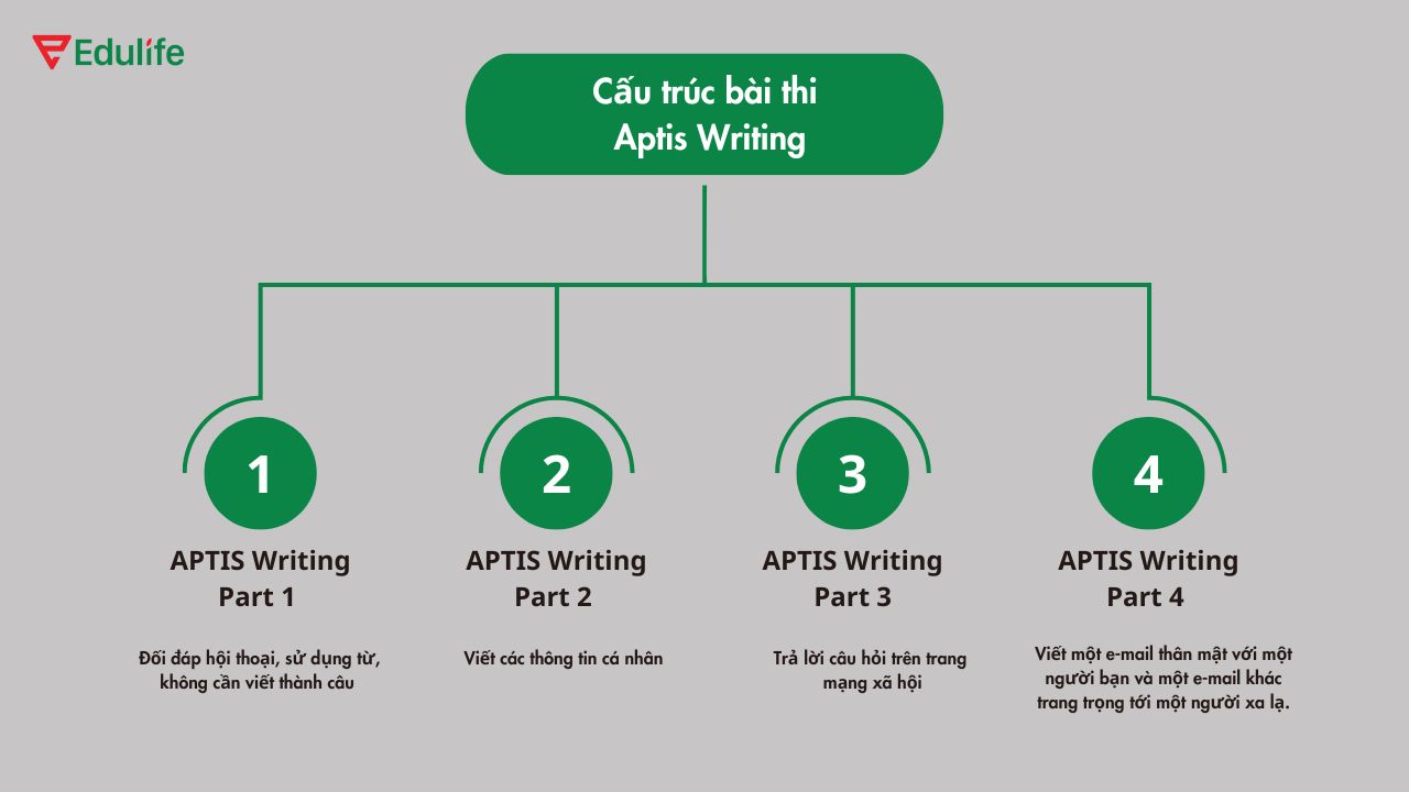 Cấu trúc bài thi Aptis Writing gồm 4 phần