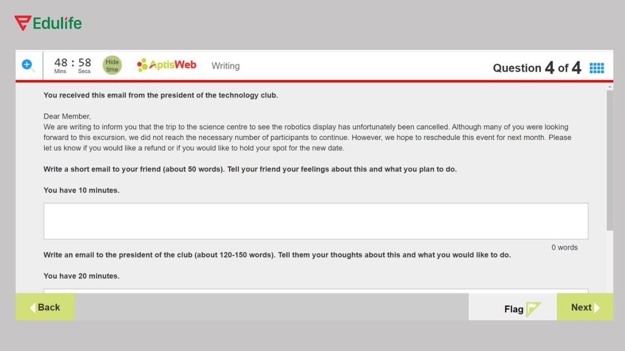 Để đạt được điểm cao trong bài thi APTIS Writing, việc phân bổ thời gian hợp lý là vô cùng quan trọng. Bài thi được chia thành 4 phần với độ khó tăng dần.