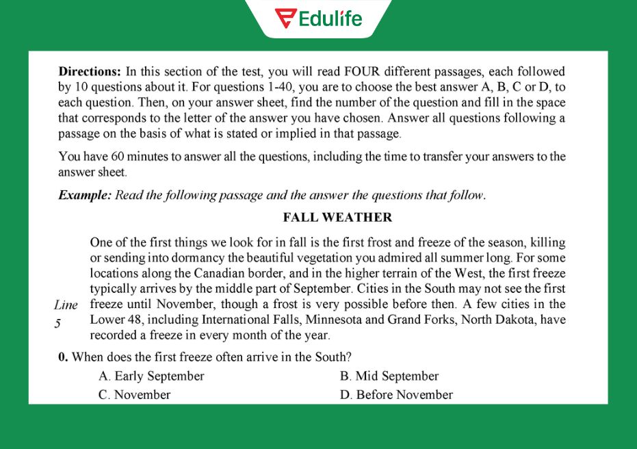 Cấu trúc đề VSTEP Reading gồm 4 bài đọc, mỗi bài có 10 câu hỏi trắc nghiệm nhiều đáp án. Như vậy, bạn sẽ cần làm tổng cộng 40 câu trắc nghiệm trong phần thi này.