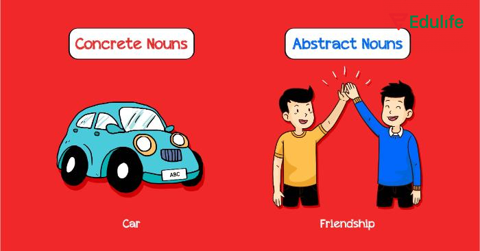 Danh từ cụ thể nhận biết rõ qua các giác quan, danh từ trừu tượng thể hiện về cảm xúc