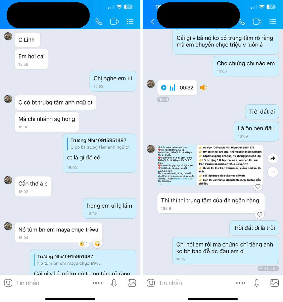 Trong tâm trạng tức tưởi, chị Th. đã chia sẻ cho chúng tôi về hình thức lừa đảo này. Cụ thể, bọn lừa đảo cam kết chỉ cần thi online là có chứng chỉ Tiếng Anh chuẩn Bộ Giáo dục (chứng chỉ tiếng Anh Vstep theo KNLNN 6 bậc). Sau đó chúng làm giả kết quả thi và cấp giấy chứng nhận giả cho thí sinh. Dẫn tới việc chị bị hủy kết quả thi đầu vào và lỡ mất đợt học thạc sỹ tới đây.