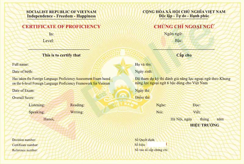 Mẫu phôi chứng chỉ tiếng anh A2 chuẩn Bộ GD&ĐT