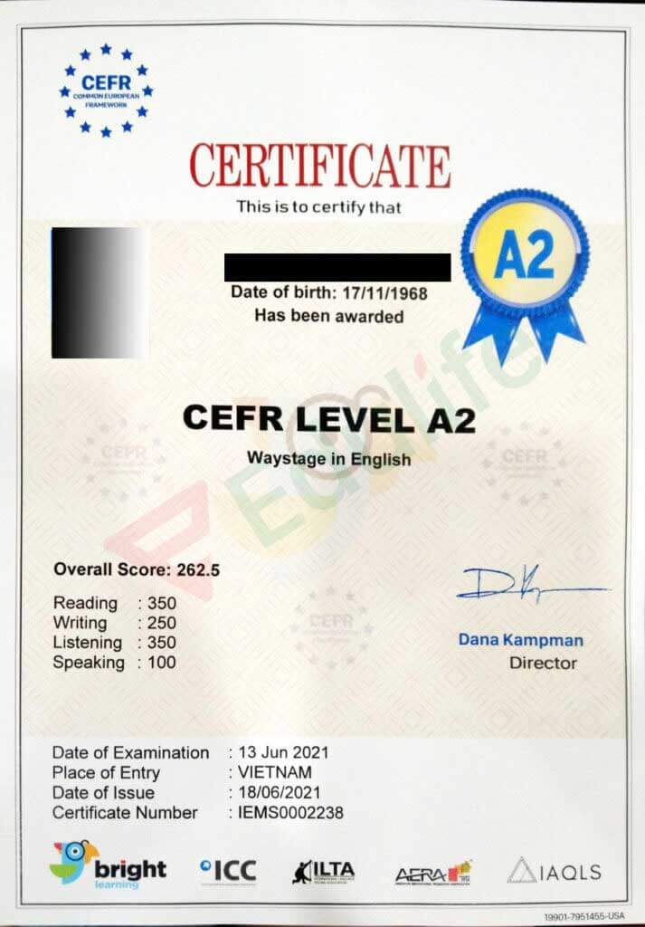 Hình ảnh chứng chỉ tiếng anh A2 chuẩn Bộ GD&ĐT