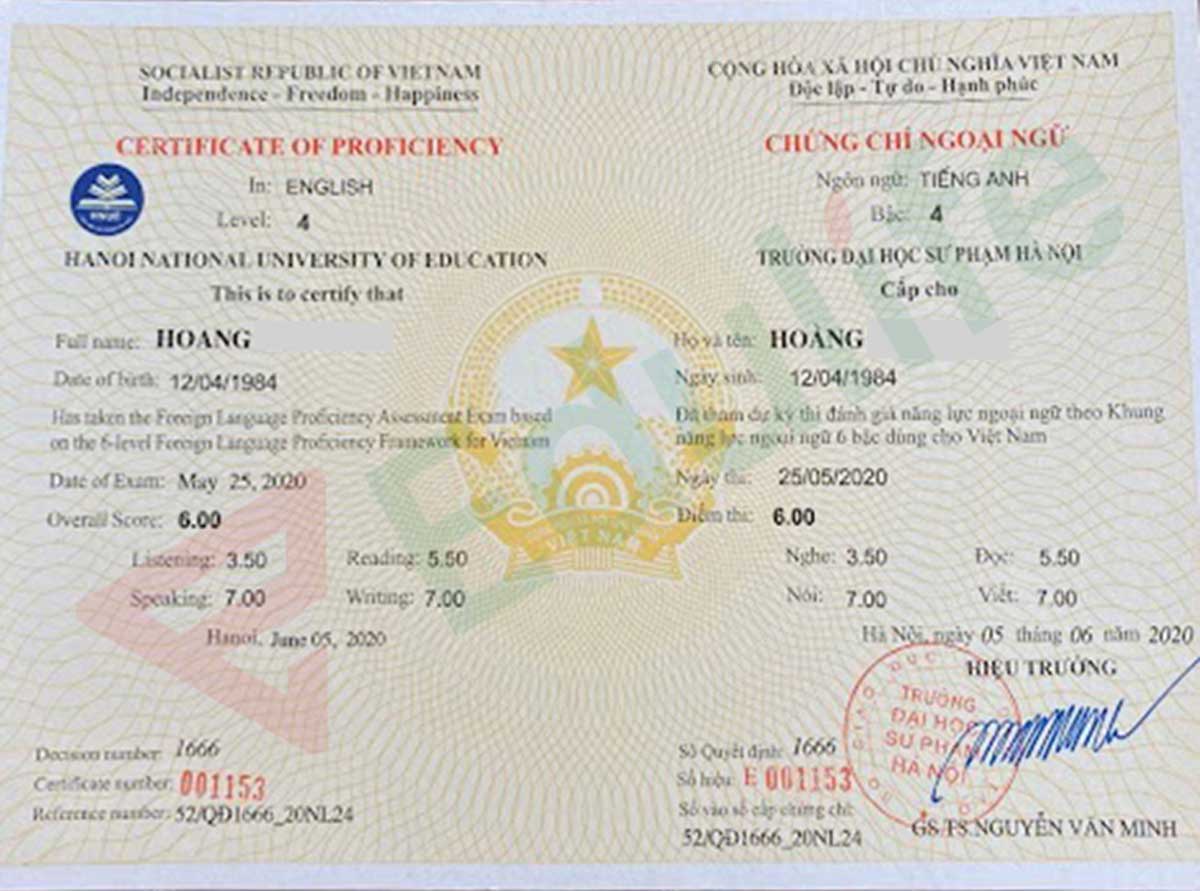 Chứng chỉ B2 tiếng anh trường Đại học Sư phạm Hà Nội