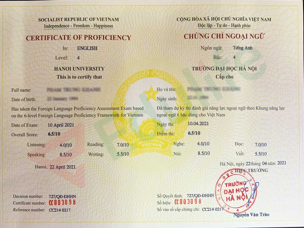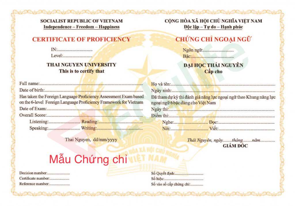 Mẫu chứng chỉ tiếng anh B2 – Đại học ngoại ngữ – ĐHQGHN
