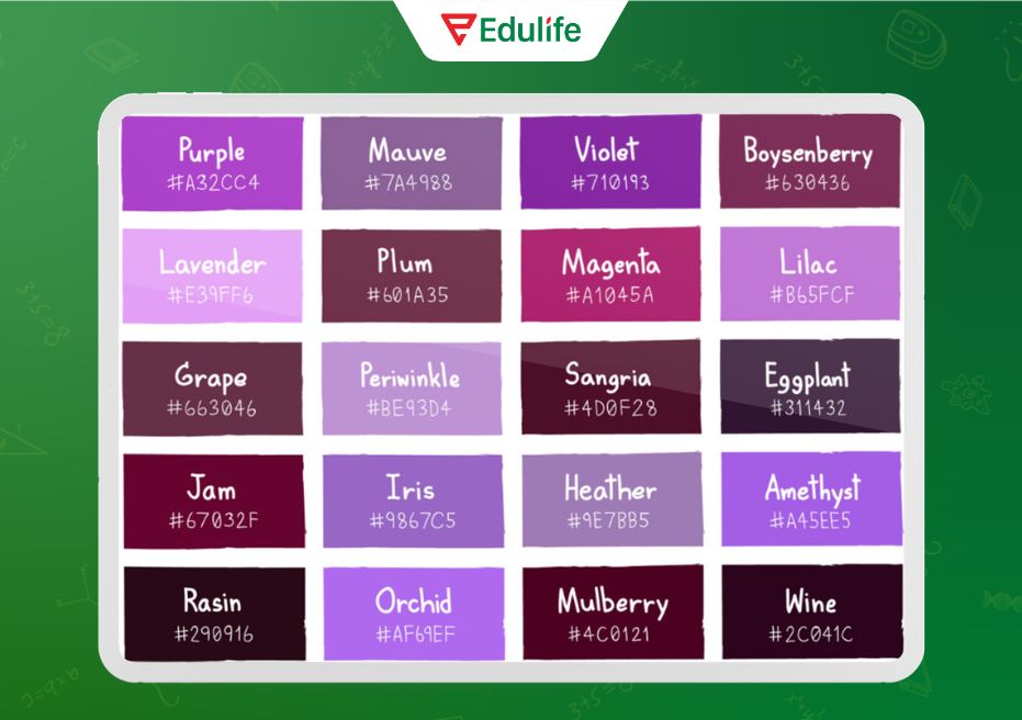 Màu tím tiếng Anh là gì? Bảng danh sách các màu tím