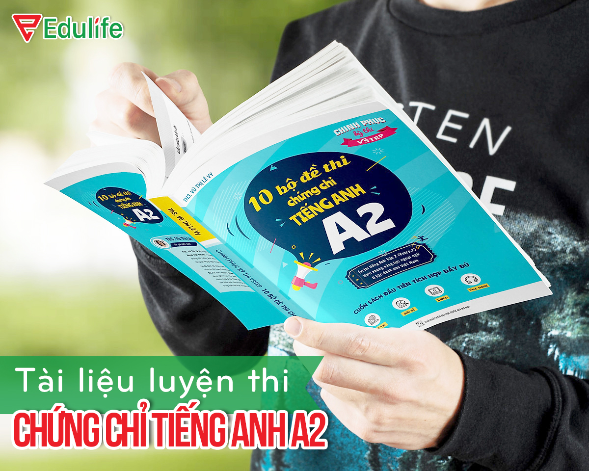 - Sách luyện 10 bộ đề thi chứng chỉ tiếng Anh A2: Để giúp thí sinh dễ dàng ôn tiếng anh A2, trường Đại Học Ngoại Ngữ – ĐHQGHN đã xuất bản cuốn sách “10 bộ đề thi chứng chỉ tiếng Anh A2”. Đây là tài liệu tiếng anh A2 giới thiệu chi tiết về bài thi và tài liệu ôn thi A2 tiếng anh, 10 bộ đề tham khảo với format bám sát đề thi A2 thực tế.