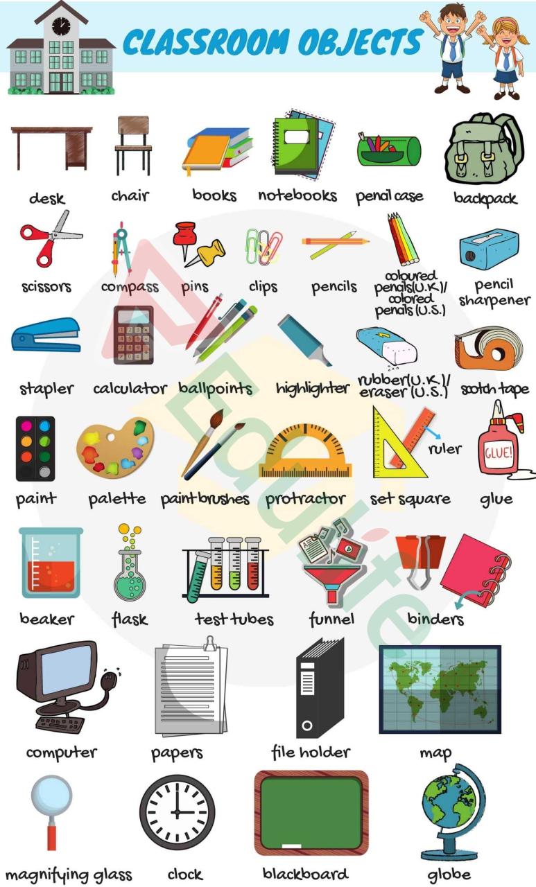 Từ vựng tiếng Anh về trường học: Các dụng cụ học tập, đồ vật trong trường học